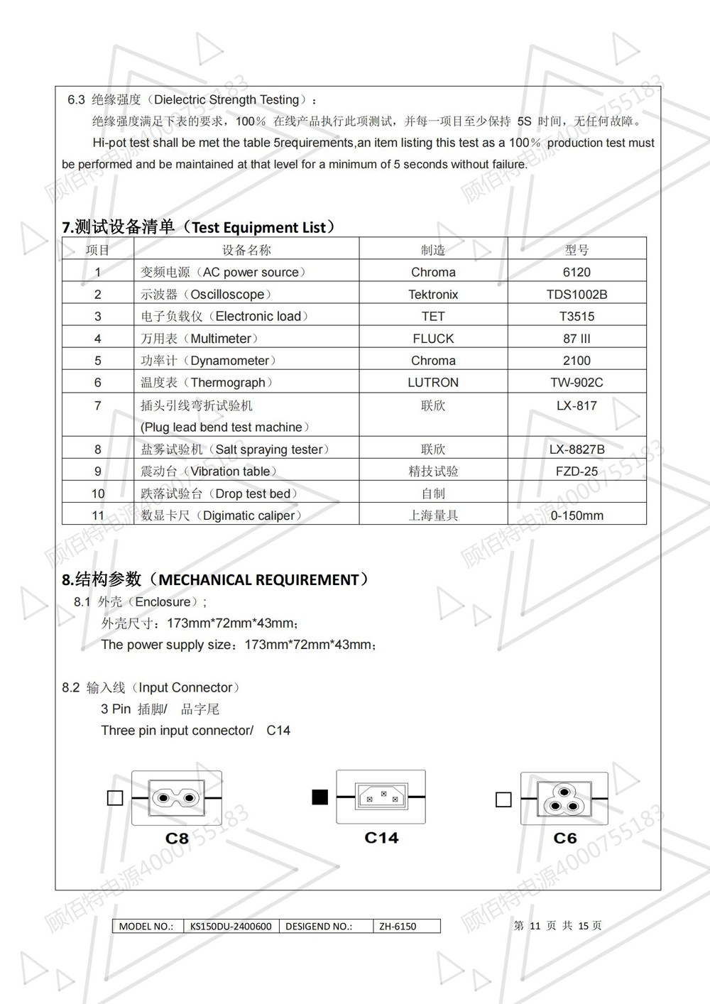 24V6A电源适配器带PFC电路144W(连续输出功率)开关电源的电气性,结构性及环境等要求。